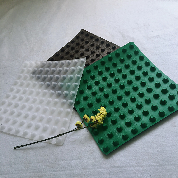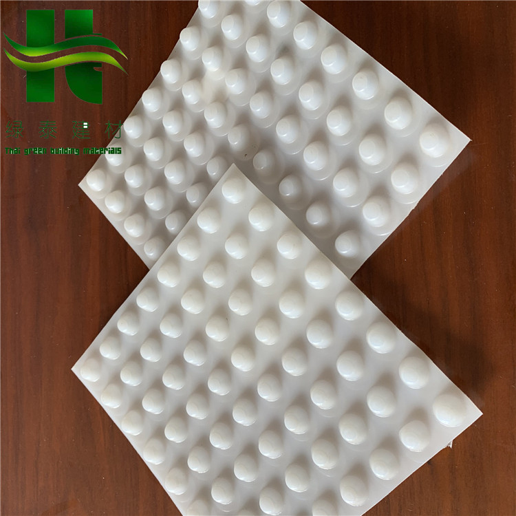 圓錐突臺(tái)的頂面膠接一層過濾土工布,以阻止泥土微粒通過,從而避免排水通道阻塞使孔道排水順暢。 傳統(tǒng)的排水方式使用磚石瓦塊作為導(dǎo)濾層、使用較多的鵝卵石或碎石作為濾水層、將水排到指定地點(diǎn)。而用排水板取代鵝卵石濾水層來排水則省時(shí)、省力又節(jié)能、節(jié)省投資、還能降低建筑物的荷載。