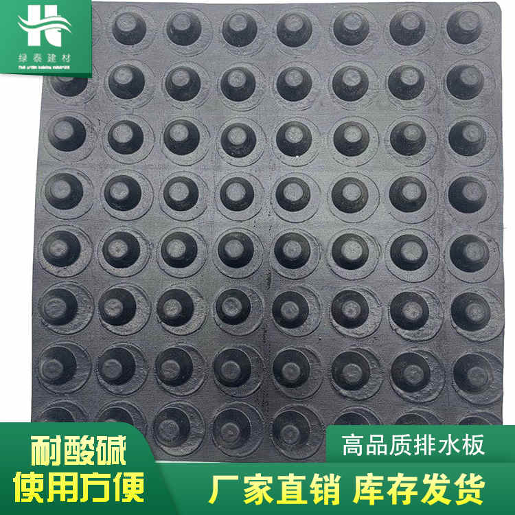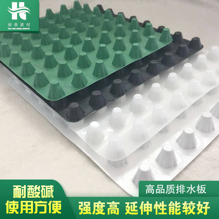 圓錐突臺的頂面膠接一層過濾土工布,以阻止泥土微粒通過,從而避免排水通道阻塞使孔道排水順暢。 傳統(tǒng)的排水方式使用磚石瓦塊作為導濾層、使用較多的鵝卵石或碎石作為濾水層、將水排到指定地點。而用排水板取代鵝卵石濾水層來排水則省時、省力又節(jié)能、節(jié)省投資、還能降低建筑物的荷載。