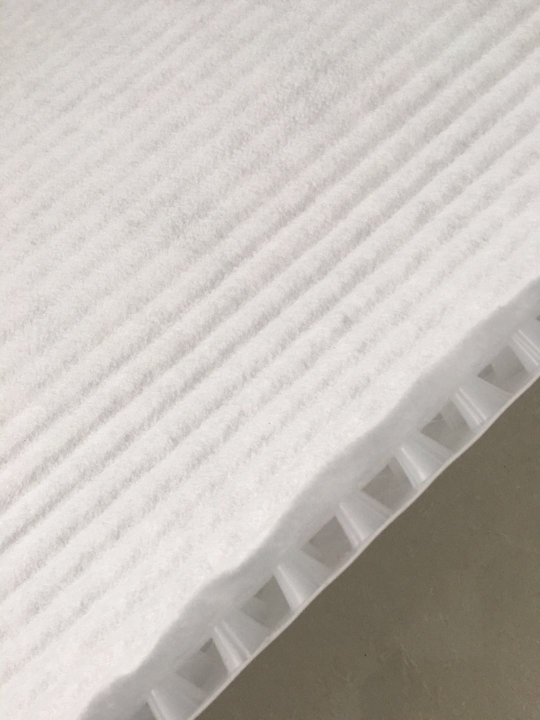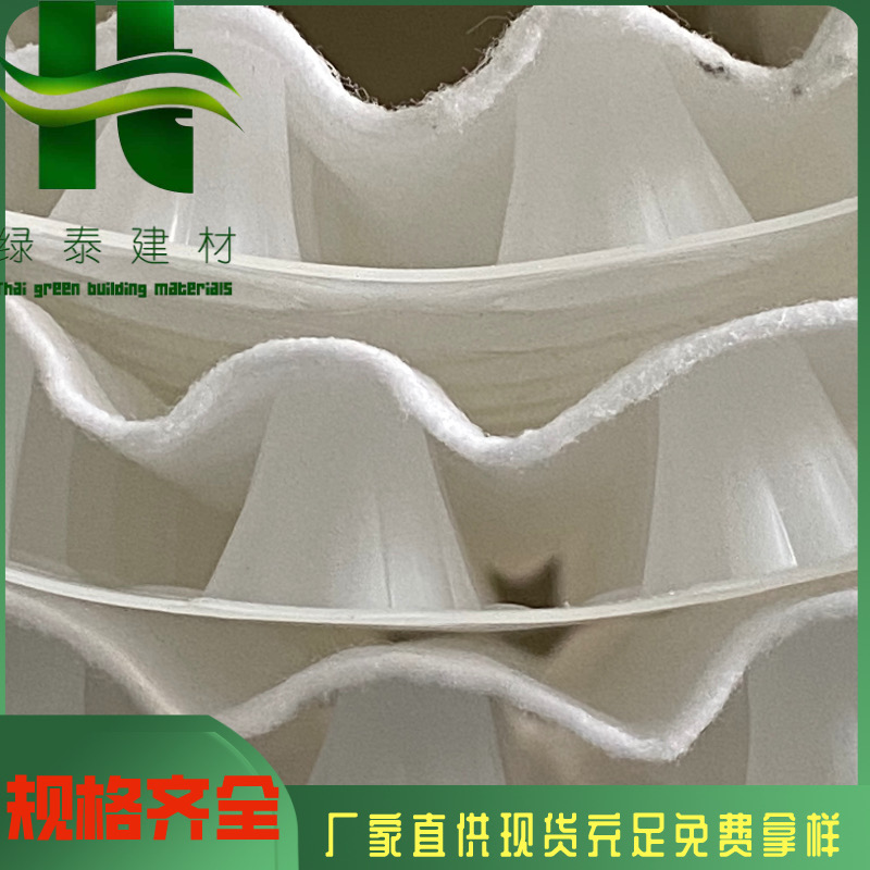 復(fù)合排水板(又名三維復(fù)合排水網(wǎng)、排水網(wǎng)格)是一種新型的排水土工材料。以高密度聚乙烯(HDPE)為原料,經(jīng)特殊的擠出成型工藝加工而成。具有三層特殊結(jié)構(gòu)。中間筋條剛性大,縱向排列,形成排水通道,上下交叉排列的筋條形成支撐防止土工布嵌入排水通道,即使在很高的荷載下也能保持很高的排水性能。雙面粘接滲水土工布復(fù)合使用,具有“反濾--排水--透氣--保護(hù)”綜合性能,是目前理想的排水材料。1、復(fù)合排水板是由一層或兩層無(wú)紡?fù)凉げ寂c一層不同結(jié)構(gòu)的三維合成土工網(wǎng)芯組成,具有排水隔離功能的復(fù)合結(jié)構(gòu)體;2、復(fù)合排水板應(yīng)用于地下車(chē)庫(kù)頂板種植、屋頂種植、地下側(cè)墻保護(hù)、排水,底板排水,隧道防水、排水,公路護(hù)坡,鹽堿地、沙漠種植、人工湖;3、復(fù)合排水板的應(yīng)用功能可隨意彎曲施工,快速排水防水層的靜水、HDPE土工膜積水,及時(shí)減輕主體結(jié)構(gòu)荷載,保護(hù)防水層和結(jié)構(gòu),避免遭受土壤回填,植物根刺、酸堿、地下昆蟲(chóng)和微生物等對(duì)防水層的破壞。結(jié)合防水層使用,起到雙重防水防滲,使防水層隔絕氣體、防止氧化,大大提高防水系統(tǒng)的壽命。柔韌性材料,抗壓、抗拉強(qiáng)度高,滿(mǎn)足開(kāi)裂縫所需的延伸率及行車(chē)道路的設(shè)施。經(jīng)久耐用的材料,滿(mǎn)足各種種植屋面使用,也可應(yīng)用老樓屋頂?shù)姆N植。施工簡(jiǎn)便,也可應(yīng)用于老樓屋頂?shù)姆N植。
