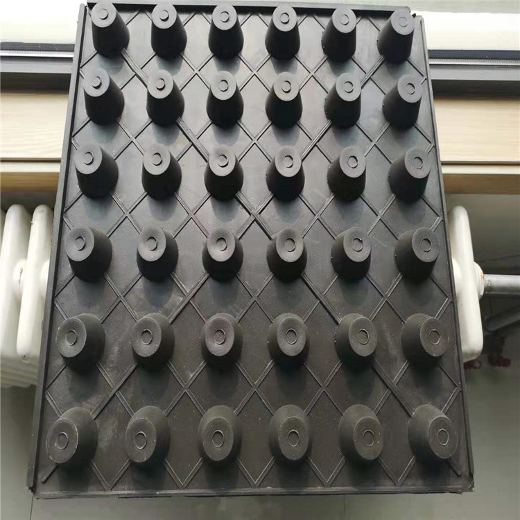蓄排水板采用高密度基乙烯HDPE經(jīng)加熱加壓定型形成的一種既能營(yíng)造具有一定立體空間支撐剛度的排水通道,又可蓄水的一種輕型板材。該種板材自身就具有蓄水、排水兩種綜合功能,板材具有空間剛度高的特點(diǎn),抗壓性明顯優(yōu)于同類產(chǎn)品(可以通過現(xiàn)場(chǎng)試驗(yàn)檢驗(yàn)),能夠承受400Kpa以上的高抗壓負(fù)荷,同時(shí)可以承受在種植頂板回填土過程